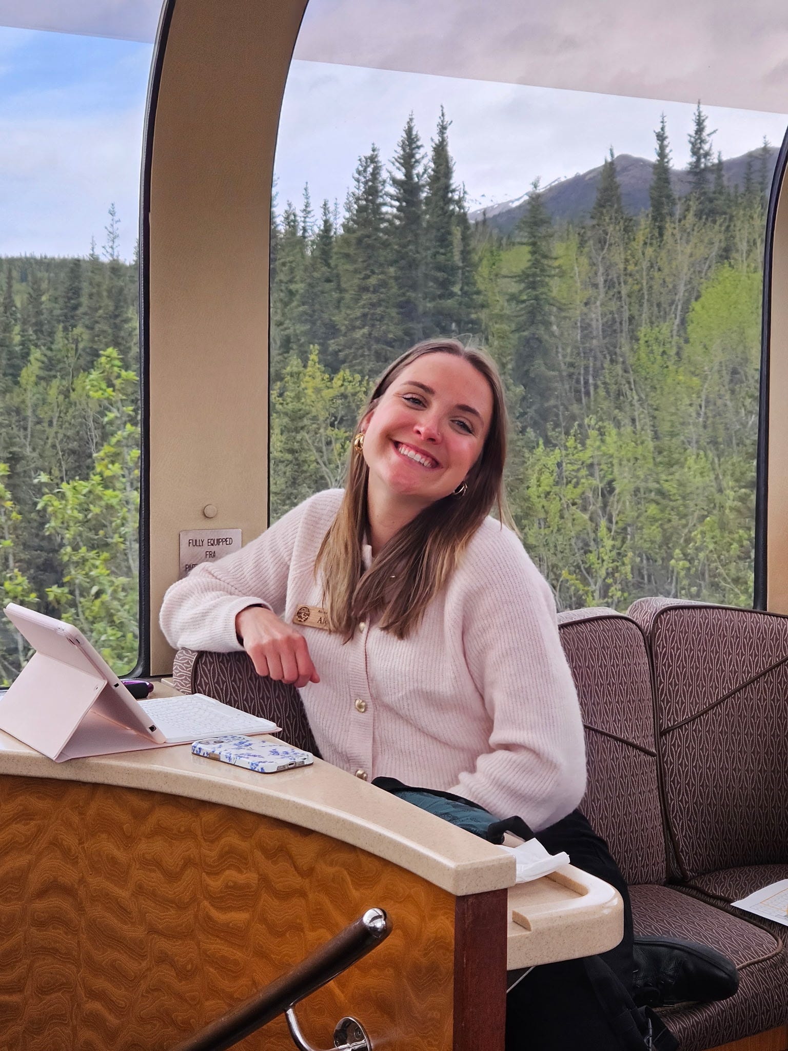 I usually post up in the back, catching up on paperwork while the train staff takes care of the guests. It’s honestly one of the most peaceful parts of the job. A guest snapped this photo of me a few weeks ago, you can see how much I’m not enjoying catching up on accounting!