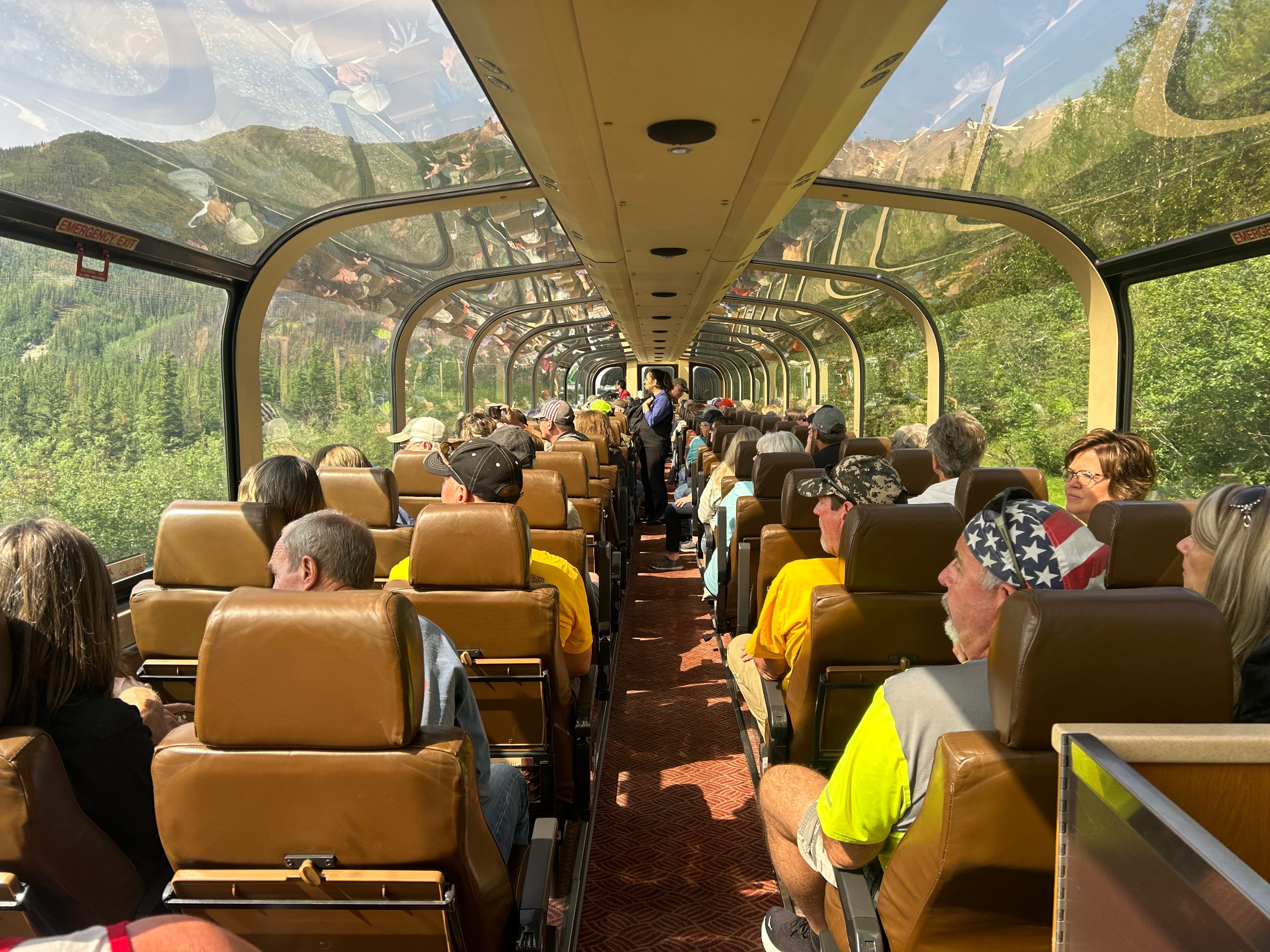 Another highlight of every trip is the train ride. This is probably my favorite part, because everyone LOVES the train. Every seat is a window seat, thanks to the glass dome ceiling, so guests can really soak in the views. Rain or shine, it is incredible way to watch the scenery and wildlife go by.