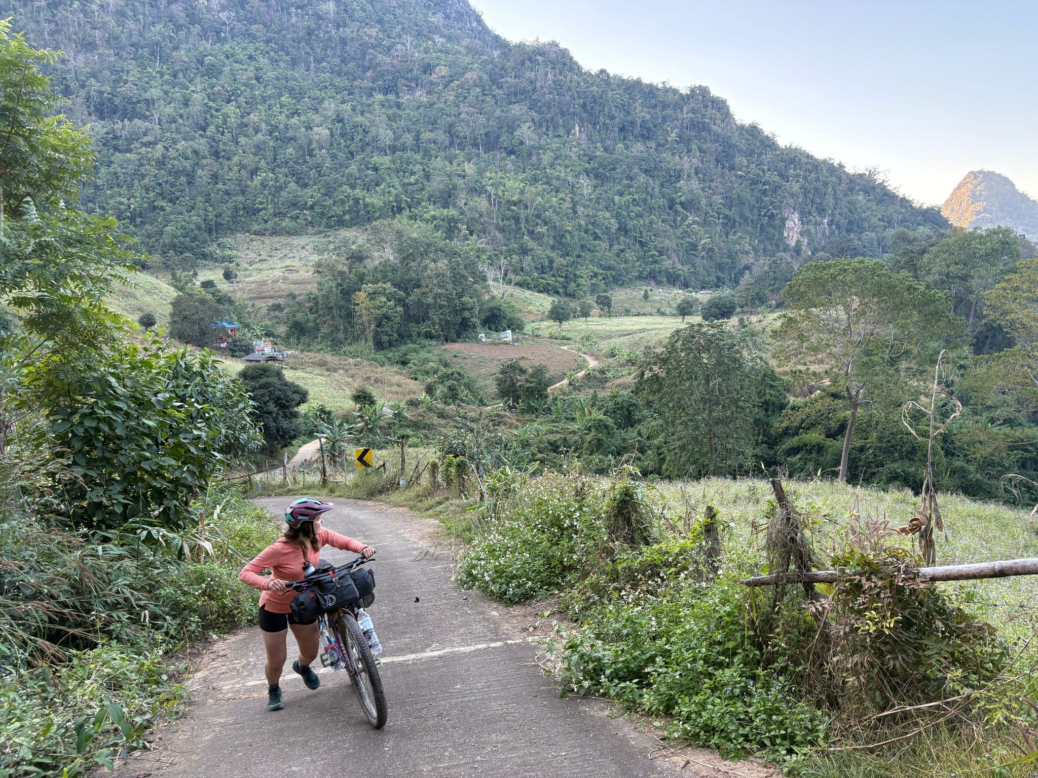 The owners run a hotel, a restaurant and the campsite (free for cyclists, wink wink, nudge nudge). They are also bike enthusiasts. We enjoyed exploring the area, checking out the local Hup Pa Tat cave, and relaxing in such a beautiful area.